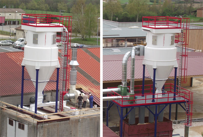 Suite à l'agrandissement de leur usine de production, deux centrales d'aspiration de type Cyclofiltre TORBEL ont été installées, une dans l'unité charpente menuiserie, et l'autre dans l'unité de rabotage.