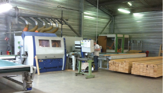 L'activité charpente, menuiserie et scierie bénéficie depuis cette année d'un nouvel atelier oà ¹ l'Agence DCI a installé une chaudière bois SCHMIDT type UTSK 360 avec alimentation automatique par système de raclage horizontal dans un silo béton, ainsi qu'une unité d'aspiration filtration et son unité de batterie filtrante TORBEK de 48 000 m3/h avec son broyeur.