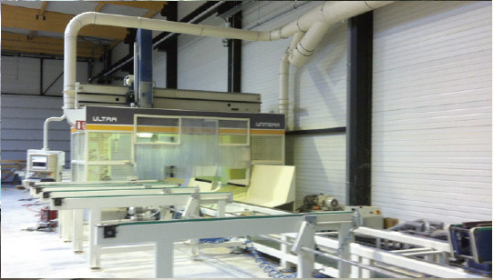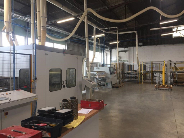 Suite à la création de son nouveau site de production, l'AGENCE DCI et la Sté IMAS sont fières d'avoir été retenues pour la réalisation de l'installation d'aspiration de l'ensemble des machines ainsi que pour l'installation d'aspiration haute pression pour l'atelier de finition, avec un silo de stockage des déchets bois alimentant un générateur d'air chaud qui tempère l'ensemble des ateliers de production. Une scie à format et une ponceuse sont venues compléter ces équipements.