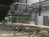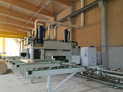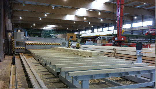 qui fournit toute une gamme de produits standard et sur mesure, l'Agence DCI a installé une ligne de tronçonnage BOTTENE type PUCH 1200 pour le débit de panneaux en lamellé-collé
