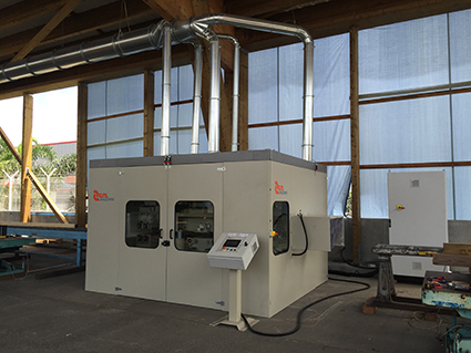 Dans le nouvel atelier, l'Agence DCI a installé une nouvelle 4 faces de charpente pour les bois exotiques 600x300 cm, type KSA 600, et a aussi amélioré le système d'aspiration avec cyclone et une batterie filtrante TORBEL de 25 000 m3/h. Ces investissements ont permis à l'entreprise d'améliorer sa productivité.