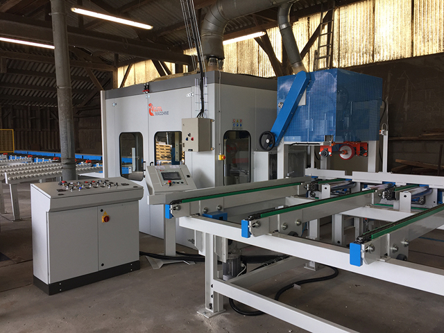L'AGENCE DCI a tout d'abord installé une raboteuse 4 faces à grande vitesse KSA 320 x 150 hydro CM MACCHINE avec une unité de délignage, et aussi, à l'entrée de la ligne d'aboutage. L'Agence DCI a installé une unité de dépilage à ventouses automatique JOUTECH permettant le triage des bois avant le tronçonnage.